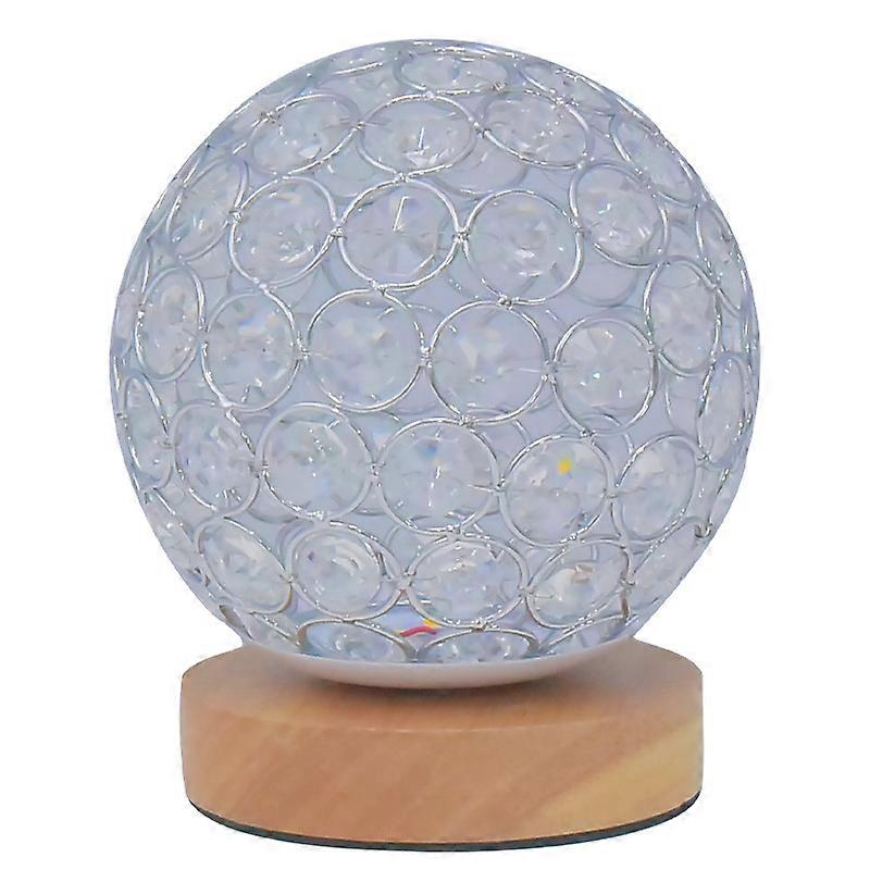 Crystal USB Table Lamp Silver Crystal Ball with Wooden Base Bedside Table Lamp Dimmable Night Light for Bedroom, Living Room, Office, Best Gifts