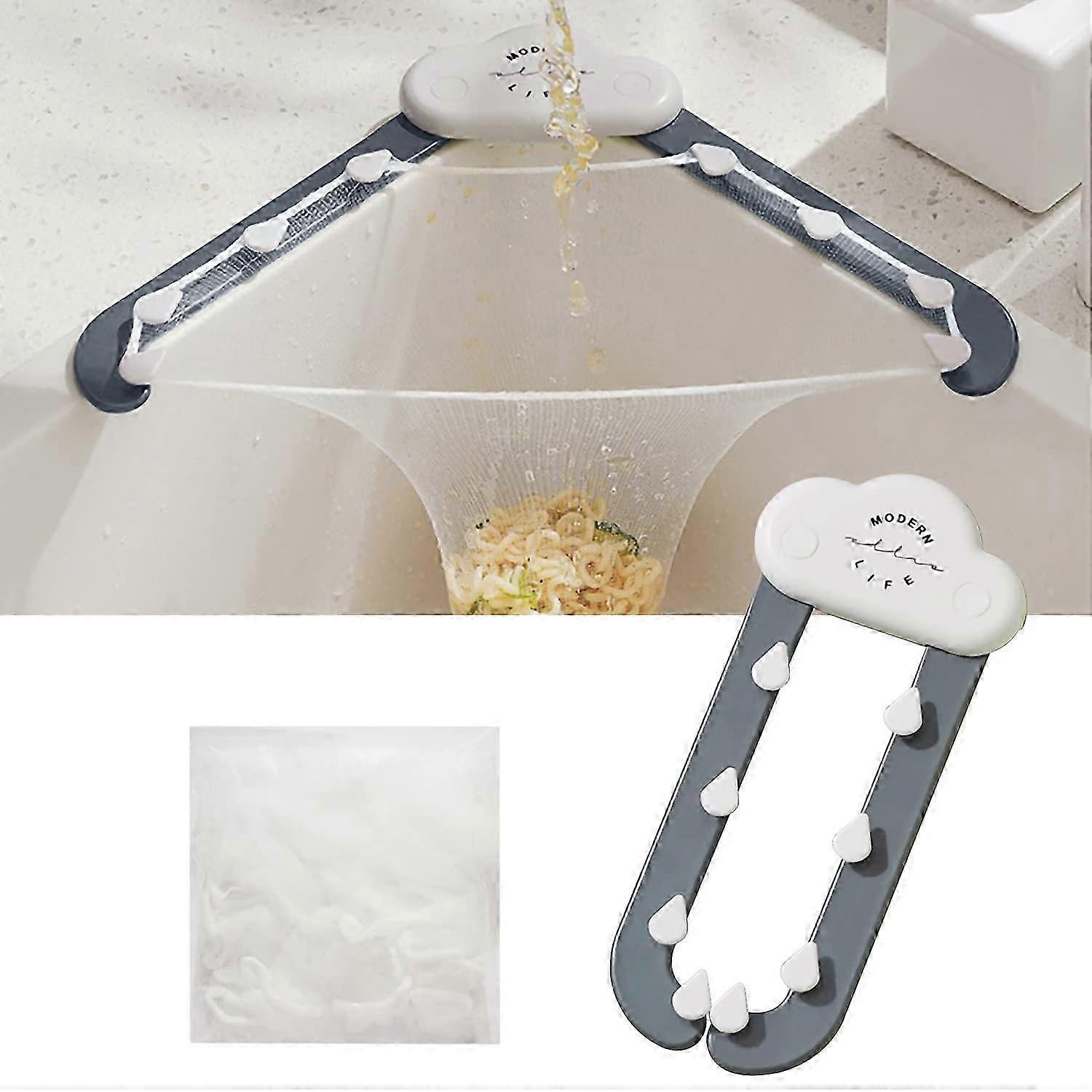 Kitchen Triangle Sink Strainer Filter Tri-Holder Kitchen Sink Strainer Drain Strainer with a Foldable Rack and 100pcs Filtering Net Mesh Bags- Grey