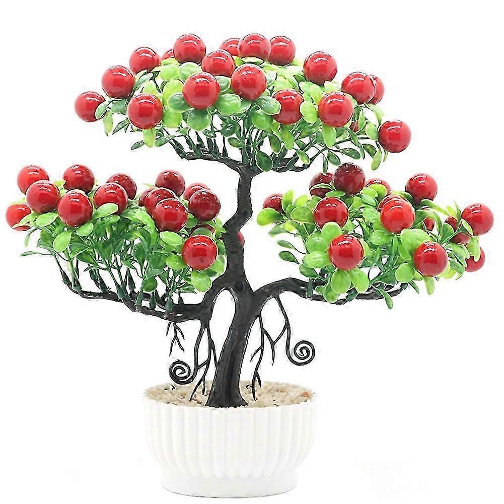 Artificial Potted Fruit Tree Simulation Potted Plant Home Office Decor (Red)--style959