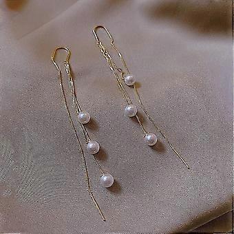 Long Tassel Pearl Earrings Pearl Drop Dangle Earrings for Women