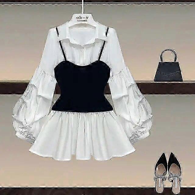 Women's Casual Blouse Shirt, Elegant Waist Slimming Lantern Sleeve Patchwork Top.