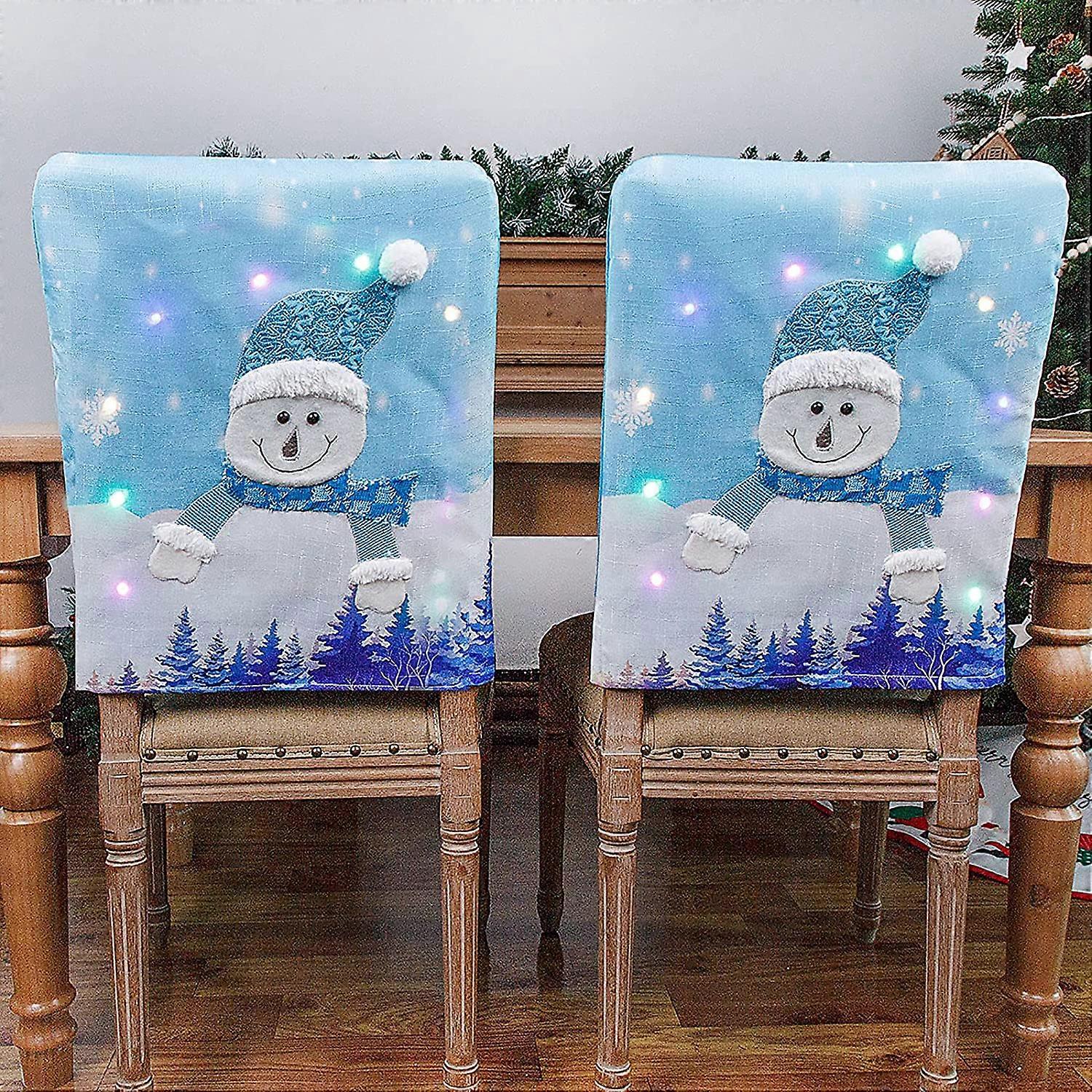 LED Lights Christmas Chair Back Covers Set of 2,Snowman Chair Protector Cover