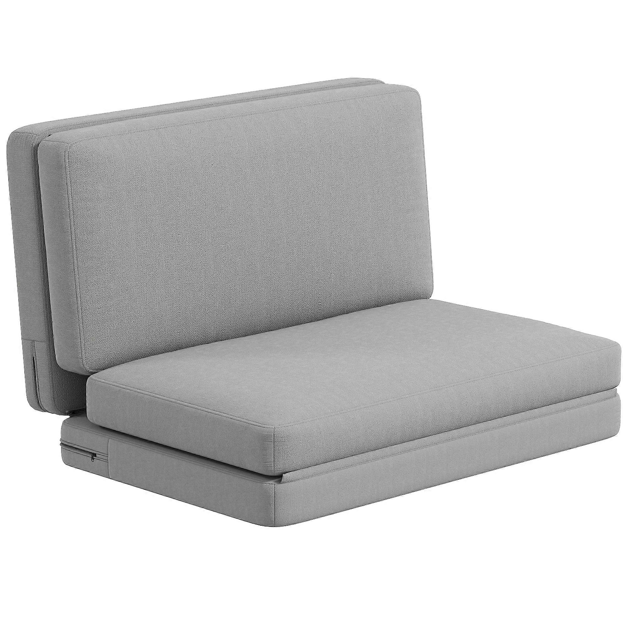Light Gray HOMCOM 3-in-1 Foldable Sofa Bed Velvet Padded 240kg