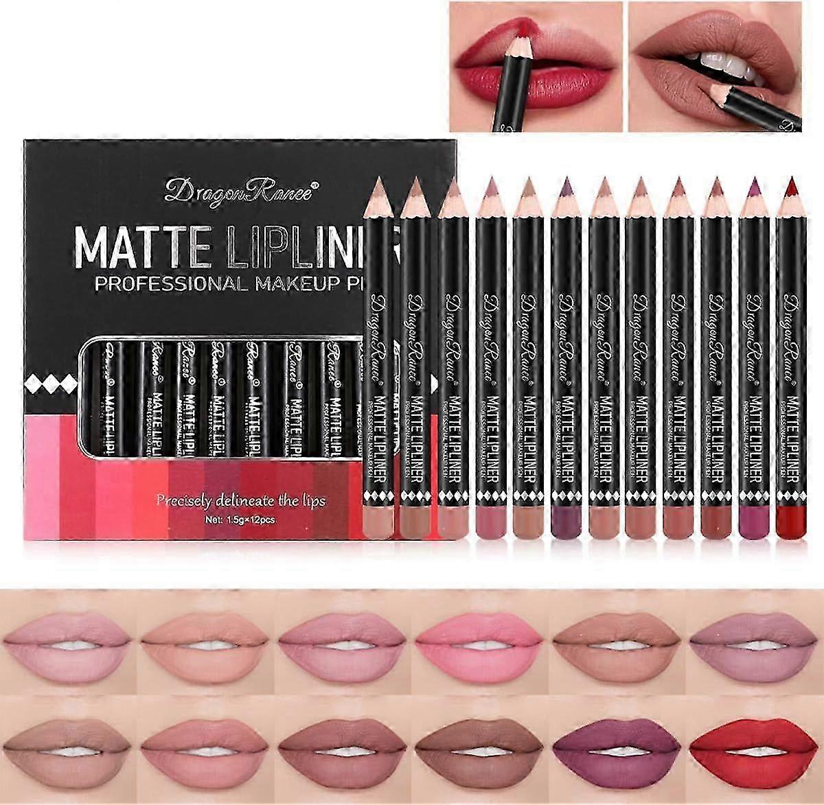 12 Colors Lip Liner Pencil Set, Smooth Creamy Texture, Lip Plumper and Long-Lasting Waterproof, Matte Lip Liner Set, Non-Stick, Lip Makeup Gift for Wo