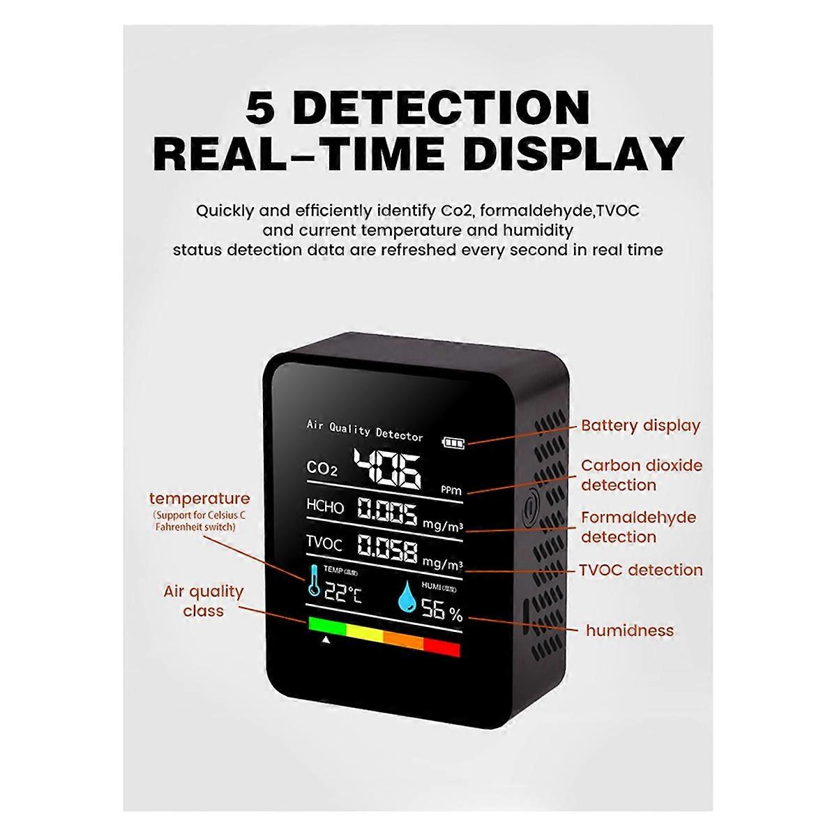 Air Quality Monitor 5 in 1 Air Quality Detector C02 Detector White