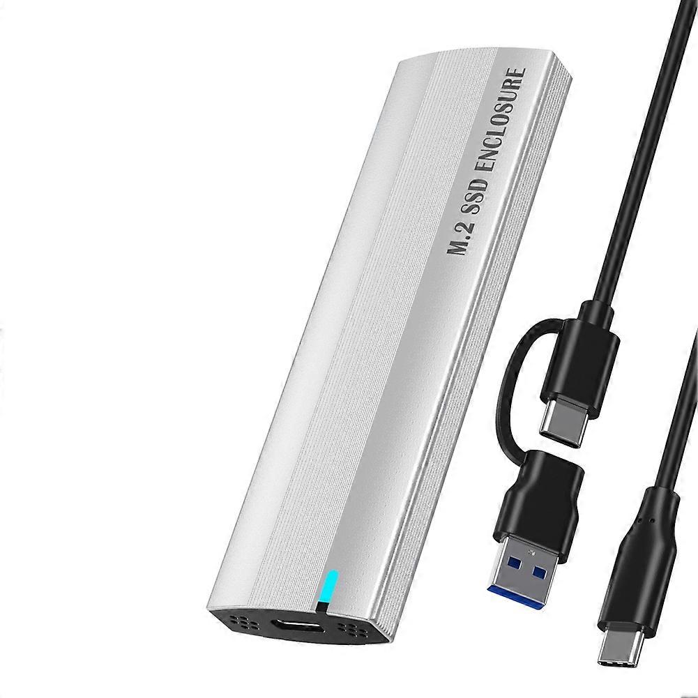M.2 Hard Drive Enclosure NGFF Dual Protocol TypeC Mobile Hard Drive Enclosure SATA SSD Solid State to USB Silver