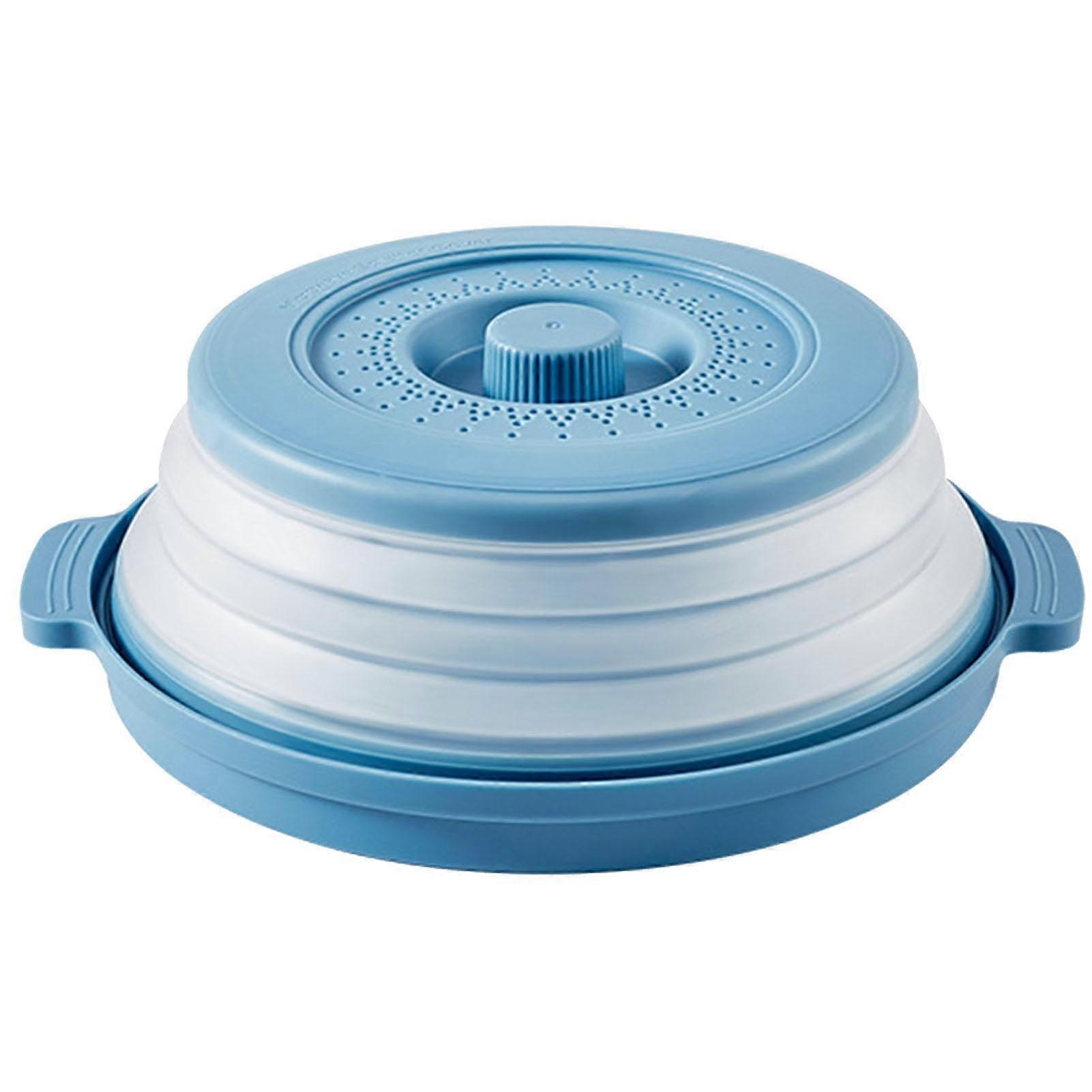 Microwave Plate With Lid Foldable Base Splash Guard And Steam Tray 26 x 26 x 8 cm Blue