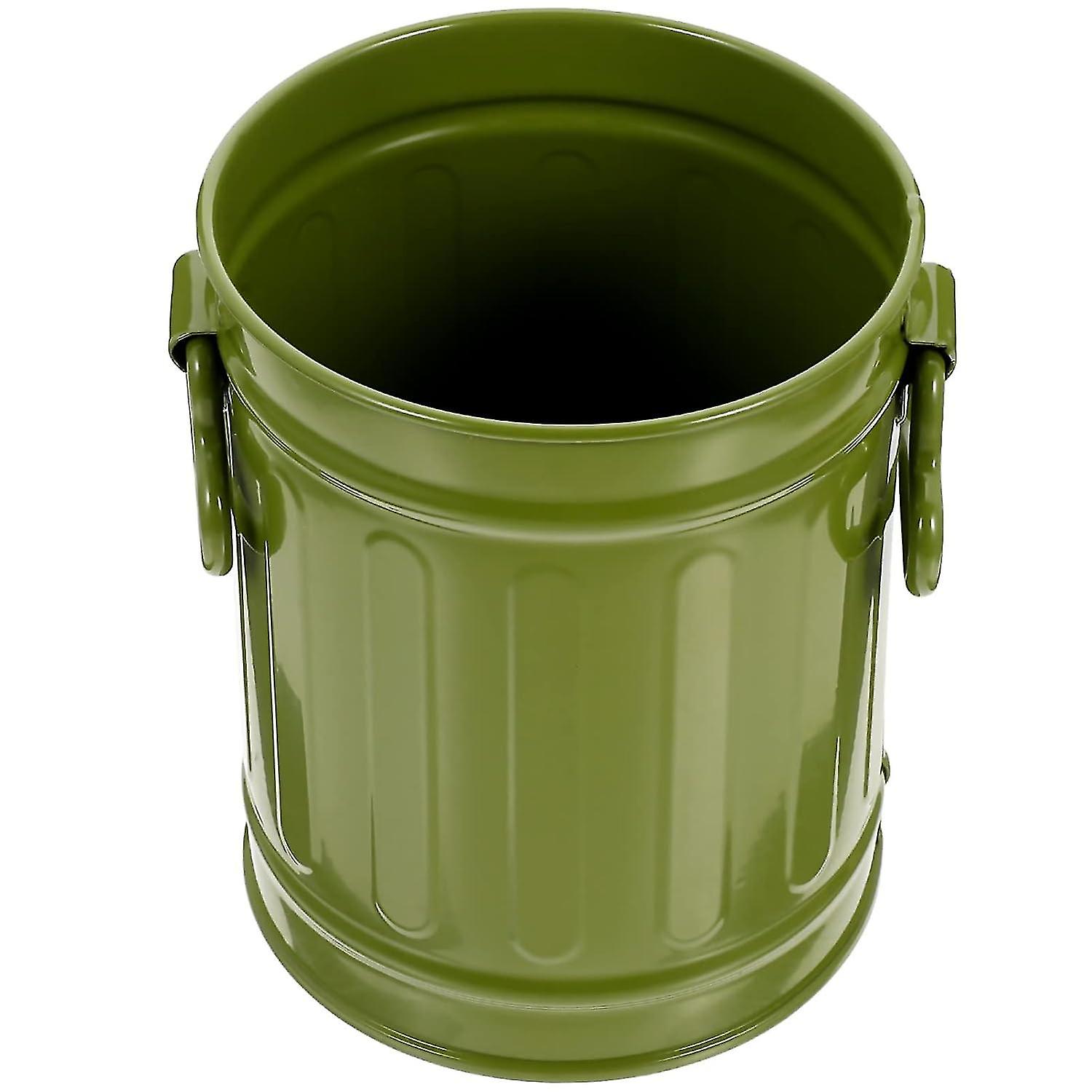 Trash Can Makeup Brush Holder Pen Pencil Cup Small Metal Flowerpot Mini Desktop Wastebasket Garbage Bin Metal Utility Pail Small Bucket Organizer Kitc