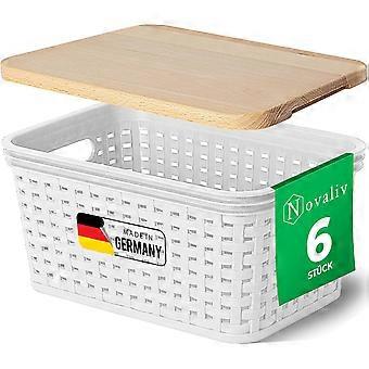 Novaliv 6er Set Aufbewahrungsboxen mit Holzdeckel Mini 2L Korb Weiß in Rattan Design Lebensmittelech
