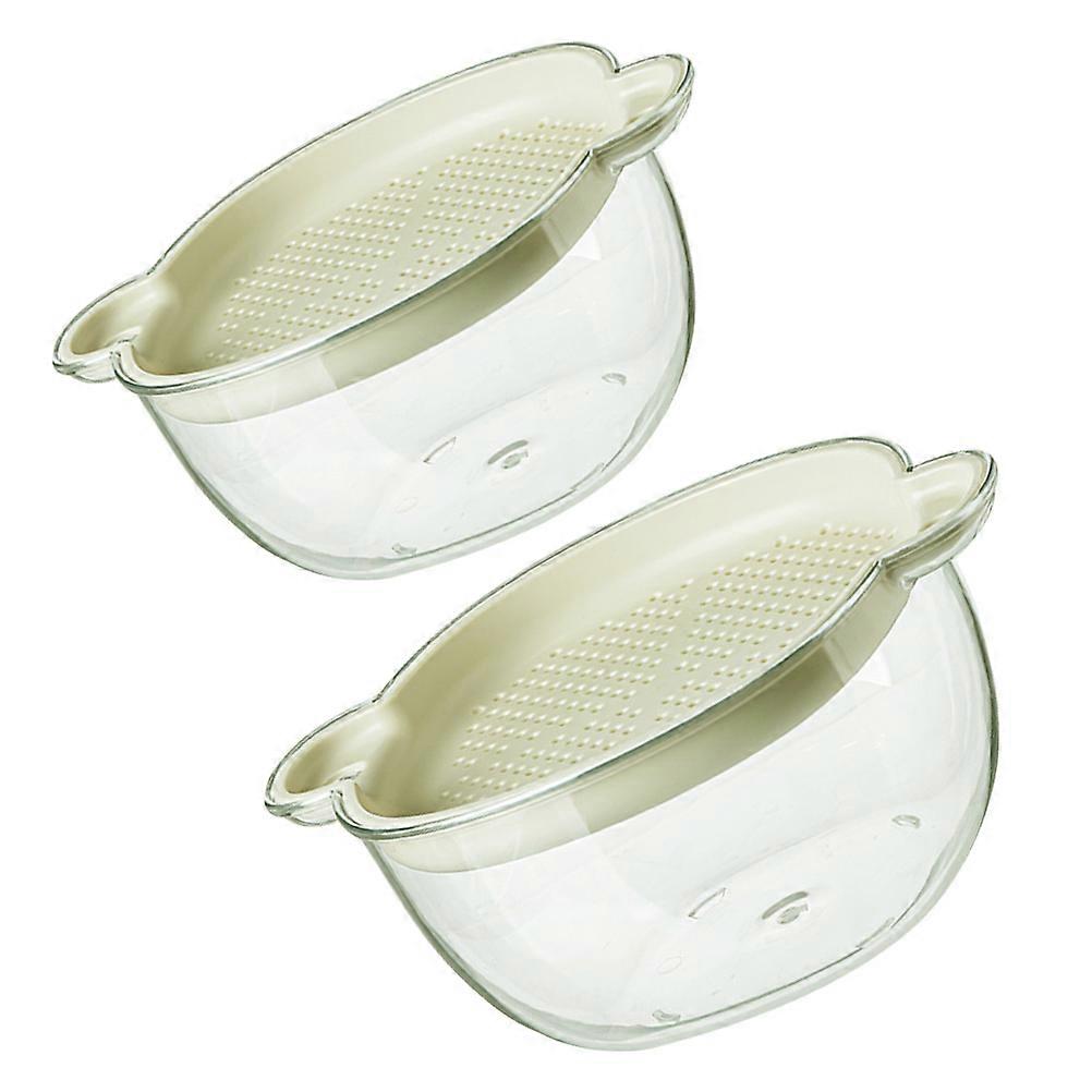 Fruit Vegetable Wash Drain Basket Double Layer Design Kitchen Supplies White 2Pcs