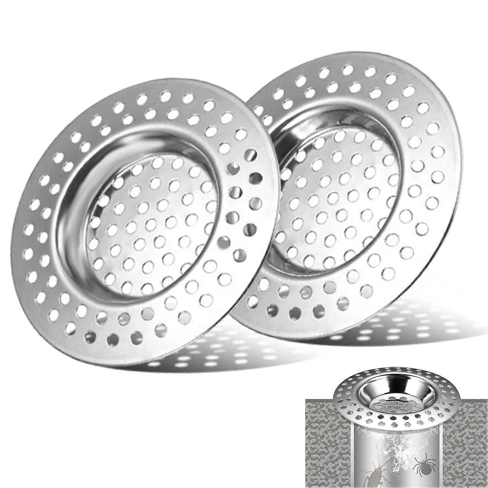 Pack of 2 Stainless Steel Drain Strainers, Holes Sink Strainer, Shower Drain Strainer, Quick Drain, Strainer for Sink or Hair Strainer for Shower