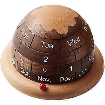Planet-Shaped Wooden Permanent Calendar, Month/Week/Day Display, Indoor Table Decor