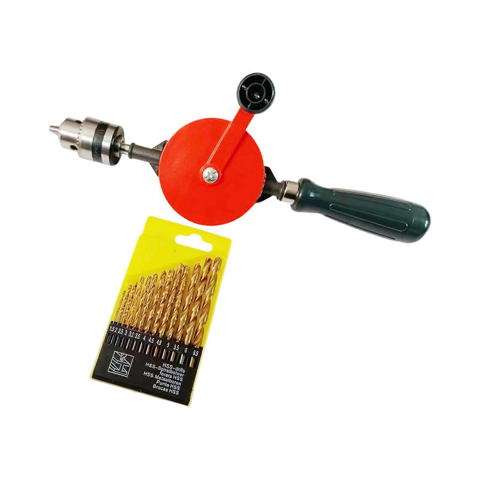 Features: This 13 piece woodworking drill bit set features a double gear drive mechanism and 45# steel construction for smooth operations, reduced jamming, and enhanced durability in demanding drilling tasks. The ergonomic hollow ABS handle offer convenient bit storage, while the adjustable silicon solvent cast chucks accommodates various bit sizes (1/4" 13mm) for versatile woodworking applications. Ideal for professional carpenters, DIYer enthusiasts, and homeowners seeking reliabled precise tools for furniture assembly, home repairs, and craft projects. Perfect for drilling through wood, plastic, and soft metals in workshops, construction site, or household maintenance scenarios requiring controlled manual operations. Engineered with gear teeth and corrosions resistant alloy components, this multi purpose drilling set ensures long lasting performances across woodworking projects and renovation challenges. Specifications: Component:aluminium alloy Clamping ranging: 0.6-6mm Net weight of product: 614g (with accessories) Product packaging: carton pack Product Specifications: 1/4 inch Package Includes: 1 Set Woodworking Drill Bit note: 1.Please allow 1-2cm errors due to manual measurement, make sure that you donot mind befores you order. 2.Due to the differences between different monitors, the picture may not reflect the actual color. Thanks for your understandings.