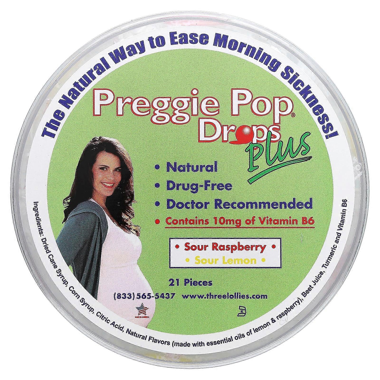 Preggie Pop Drops Plus, Sour Raspberry, Sour Lemon, 10 mg, 21 Pieces