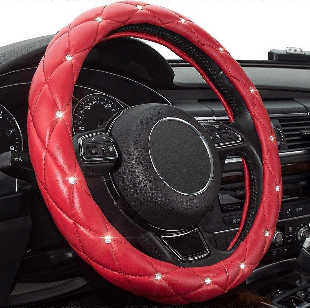 Red Bling Diamond Steering Wheel Cover Leather Car Steering Wheel Cover Women Red,Crystal Rhinestone