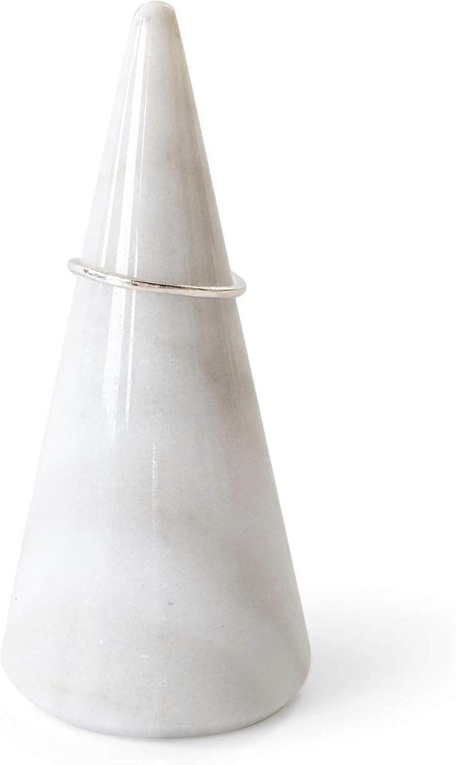 Ring Holder Cone Genuine Marble Polished| Ring Jewelry Display Stand (White