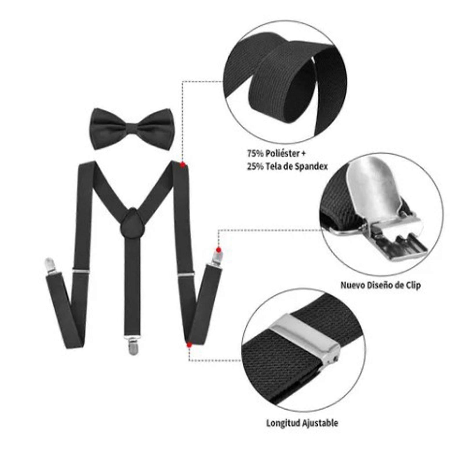 Black Adult Bowtie Suspender Set Adjustable Clip On Elastic Men Suspender for Office Business