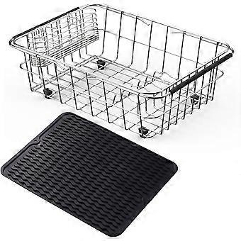 Teleskop-Spülbecken-Organizer Edelstahl Geschirrtrocknung Abflusskorb Schwammhalter L Silber
