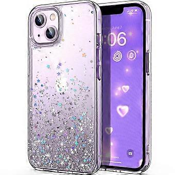 Glitzer-Hülle für iPhone 14 Plus, transparent, schlank, stoßfest, kompatibel mit Apple iPhone 14 Plus 2022, silberne Sterne für Frauen und Mädchen