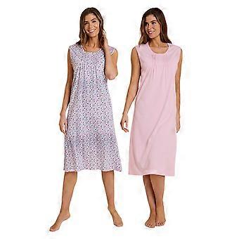 Amber | Damen | 2er-Pack ärmellose Nachthemden – Weiche Baumwoll-Nachthemden in Knielänge mit Biesenkragen und Knopfleiste Amber