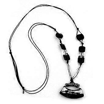 Kette 54x19mm Anhänger Rohr flach gebogen braun-marmoriert matt Kunststoffperlen 90cm