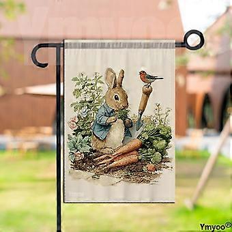 1pc Double-Sided Garden Flag | Peter Rabbit with Blue Jacket, Shovel, Carrots, Bird, and Flowers for Yard Decor, Gatherings, Front Porch Ornament | Po