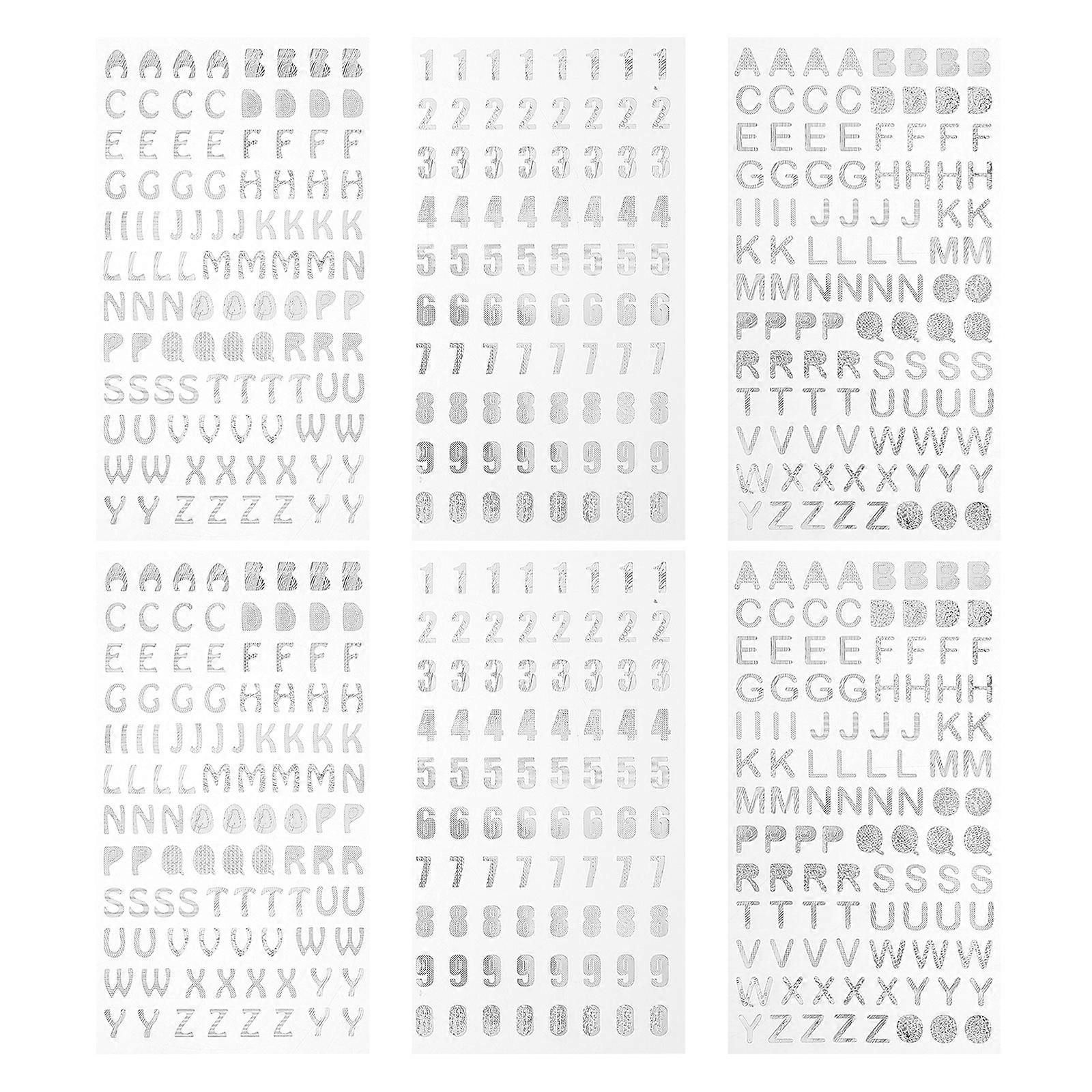 Self Adhesive Metallic Silver Alphabet Number Stickers 6 Sheets for Crafts, Scrapbooking, and Creative Art Projects