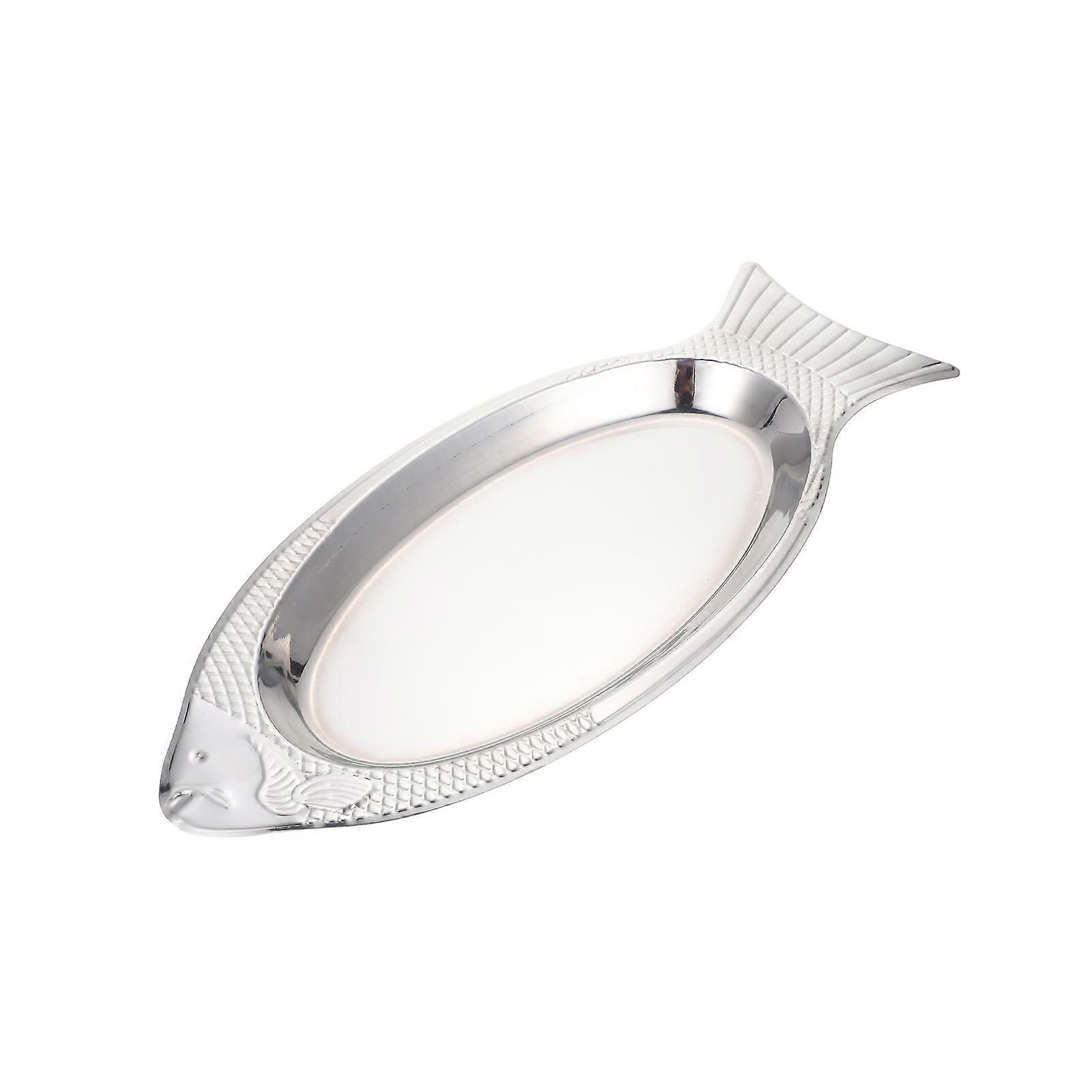 Fish Shape Serving Plate Stainless Steel Decorative Fish Steam Plate Gift Giving 17.68X7.86X0.98in Microwaveable 1Set