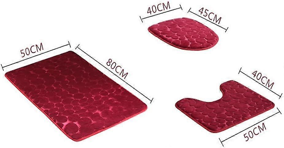 Set Of 2 Non-slip Extra Soft Polyester Bathroom Rugs (3 Pieces) (grey)