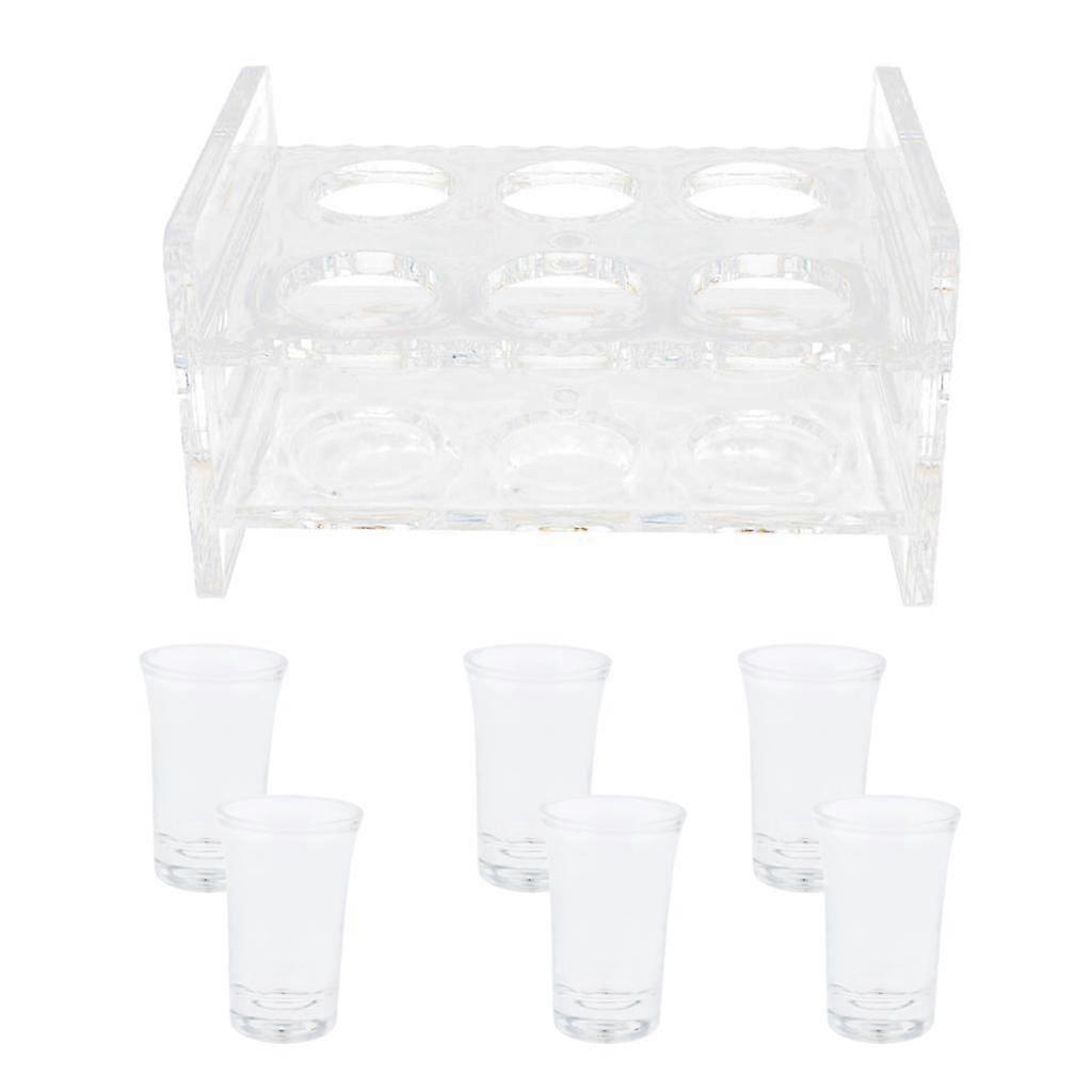 Set of 6PCS 45ml Shot Glass & Clear Acrylic Serving Tray w/Handles