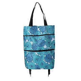 SHENGXINY Foldable Grocery Cart on Wheels 26x10x44cm, Soft Oxford Fabric Trolley with Folding Wheels, Reusable Shopping Bag for Easy Transport, Blue