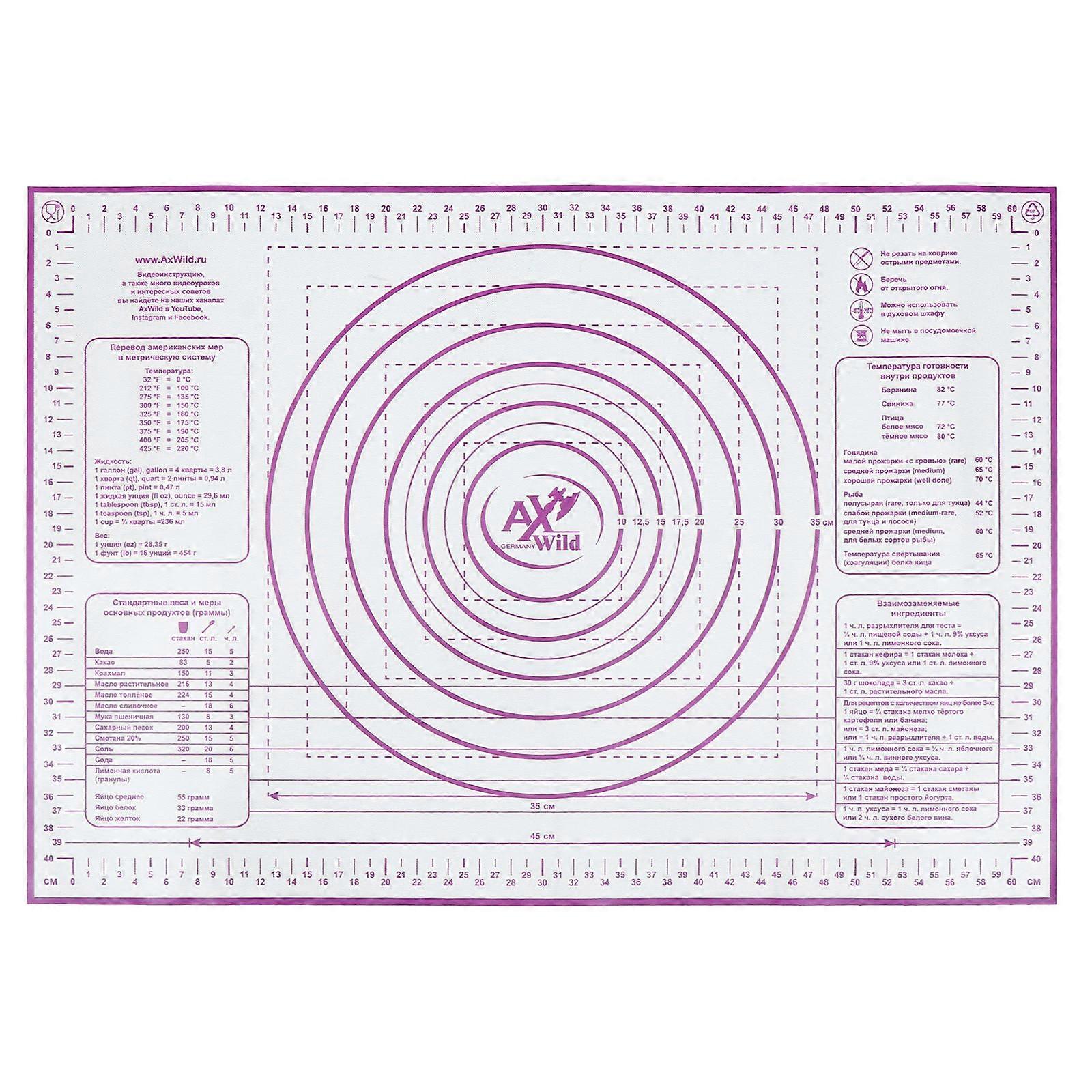 Silicone Pastry Mat Non-Slip Baking Mat with Measurements for Dough