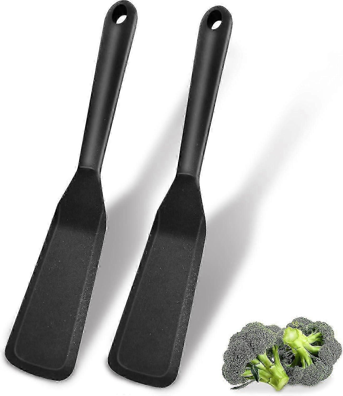 Silicone Spatula Set of 2, Non-Stick Heat Resistant Spatula for Cooking Fish, Pancakes, Eggs, Pizza, Steak, BPA Free (Black)