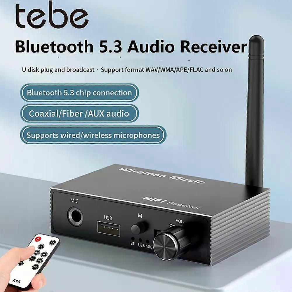 Tebe Optical Coaxial Bluetooth 5.3 Audio Receiver Wireless Stereo Music Adapter U Disk Player with Mic IR Rmote Control