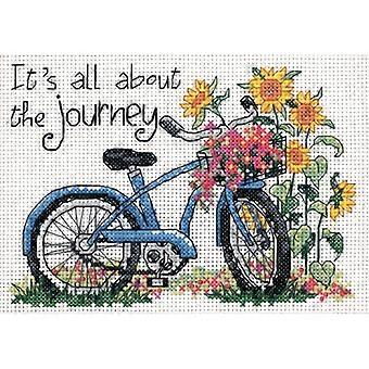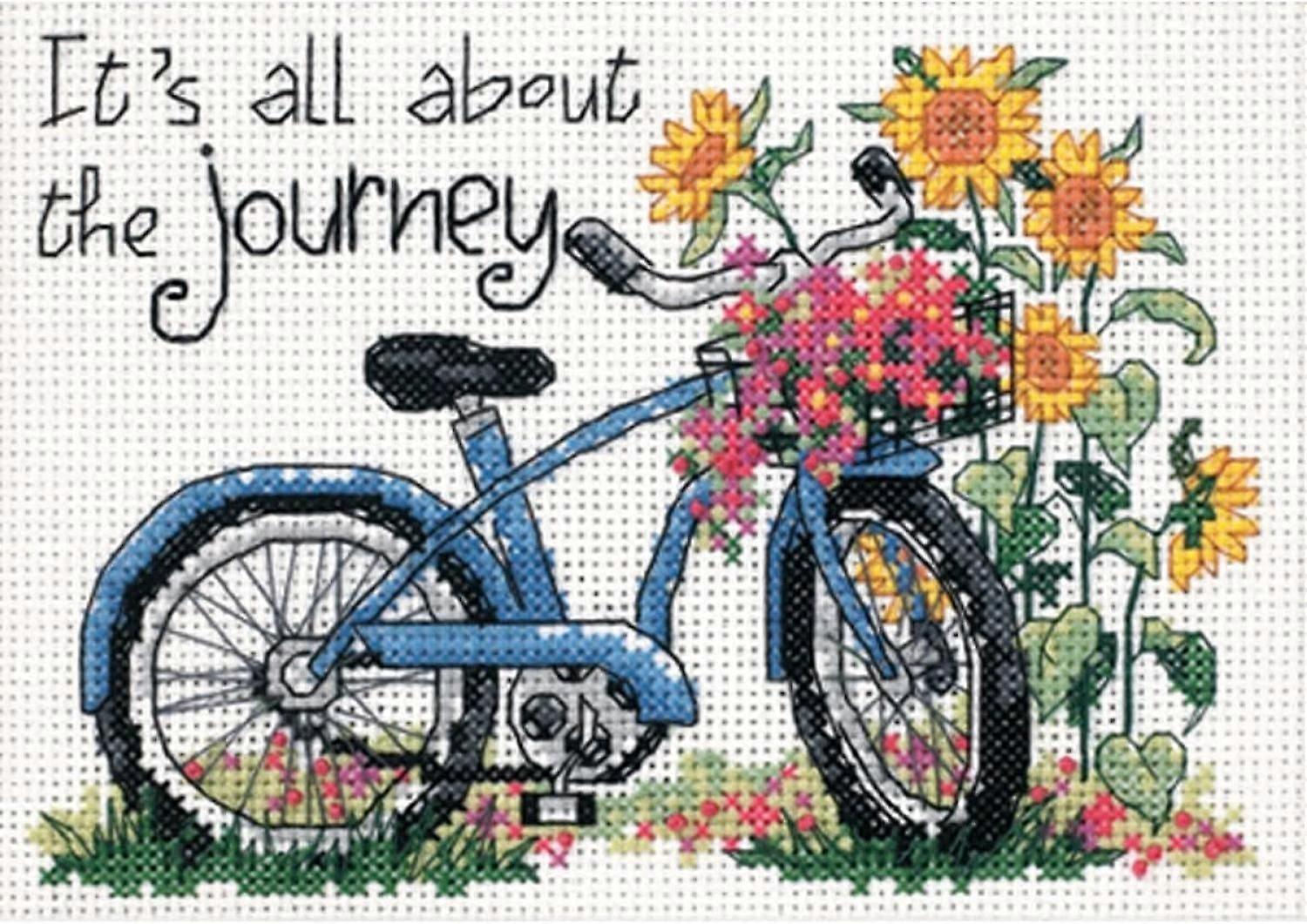 The Journey' Bicycle Counted Cross Stitch Kit, 14 Count White Blank Fabric, 7" x 5"