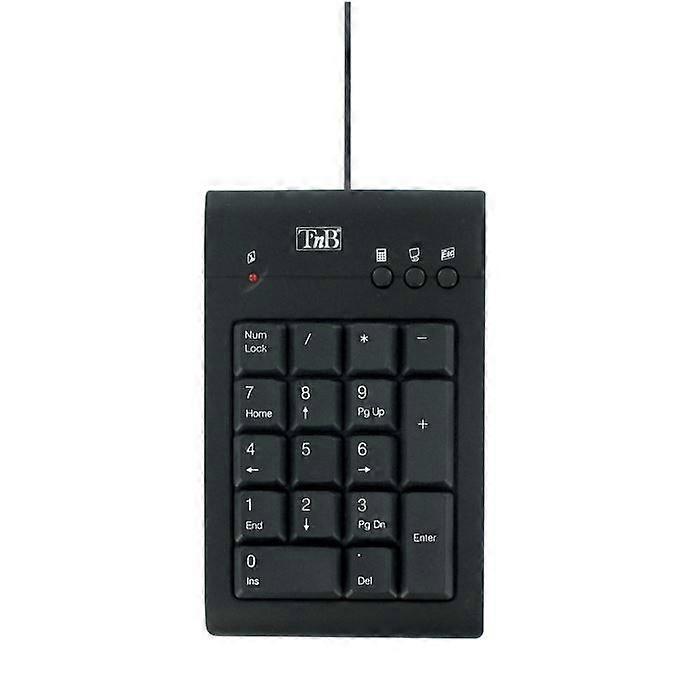 The TNB numeric keypad for Notebook MPV1 is a wired USB device with 19 keys that allows for quick and easy number input on your notebook. It is also equipped with 4 shortcut keys for the internet browser, tabs, email, and calculator. Compatible with Windows XP/Vista/7/8 and Mac operating systems, it is black in color.