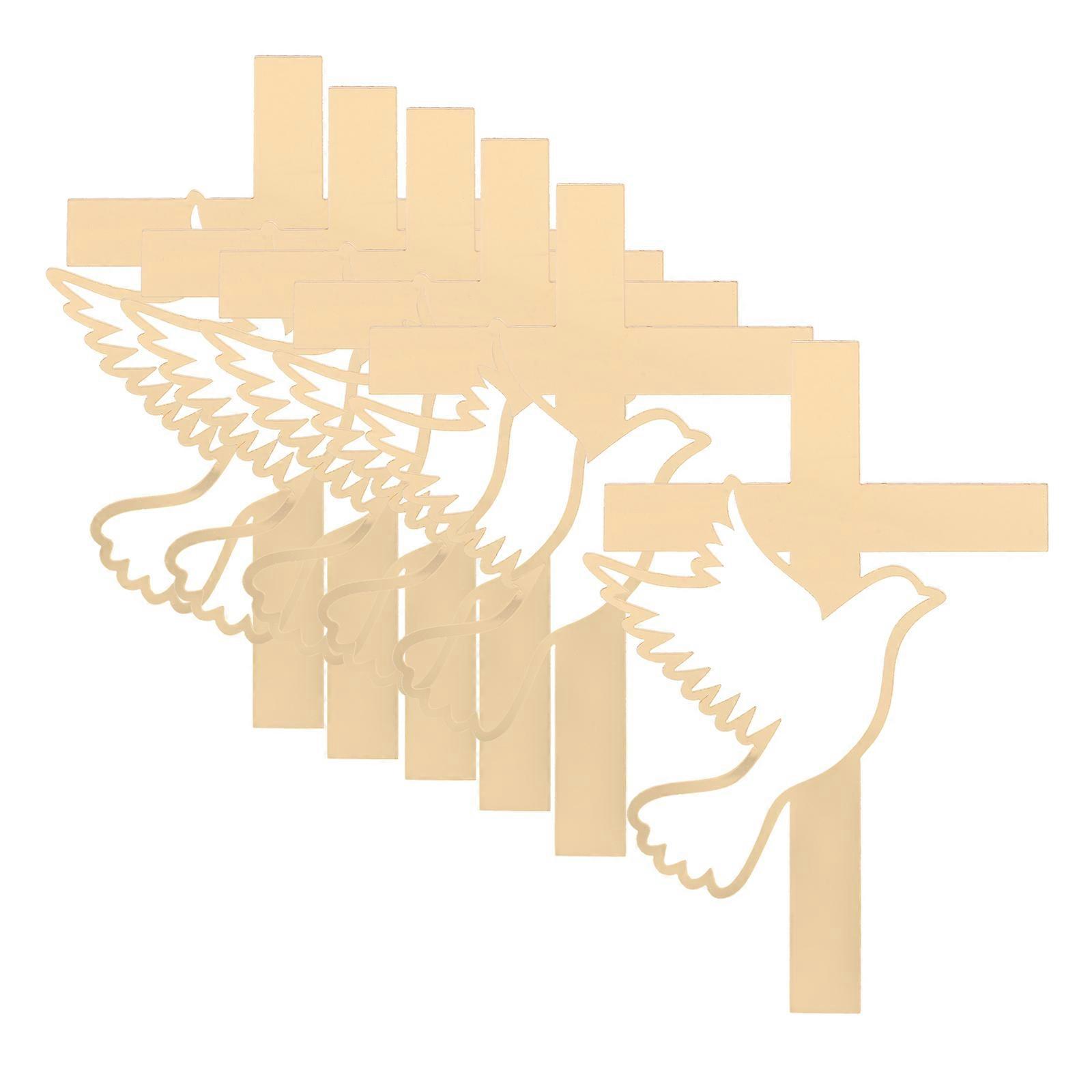 Add a spiritual touch to your celebrations with this peaceful dove cross cake topper. The beautiful design is ideal for first holy communion, baptism, and other religious gatherings. Its lightweight and durable construction ensure it stays in place, making your cake the highlight of the event while conveying a message of peace and devotion. Features -Color:Golden -Material:Plastic -Size:15.00X10.00X0.10cm/5.89X3.93X0.04in -Baptism cake topper: the peaceful symbolizes faith and peace, great for enhancing religious celebrations -Cross cake topper: crafted with care, these toppers offer a sophisticated and detailed decoration for cakes and desserts -Stable and reliable: designed to stay securely in place, ensuring your cake remains beautifully adorned throughout the event -Adaptable design: works seamlessly for various occasions, including baptisms, first communions, and themed parties -Reusable convenience: easy to clean and store, these toppers can be reused for future celebrations, saving time and money Package list: 6 x Cake Decoration