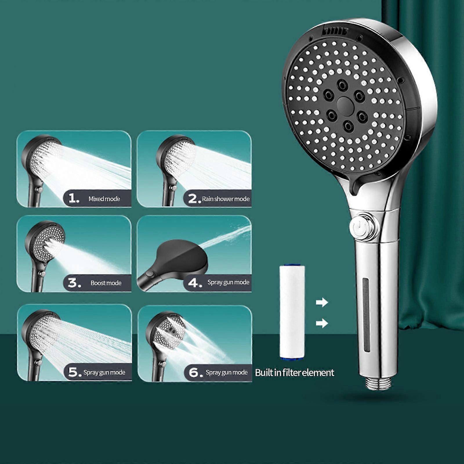 Turbo Shower Head with 6 Bathing Modes & One-Press Stop, Compatible with Standard Hose, Water-Saving Shower Nozzle for Home Bath