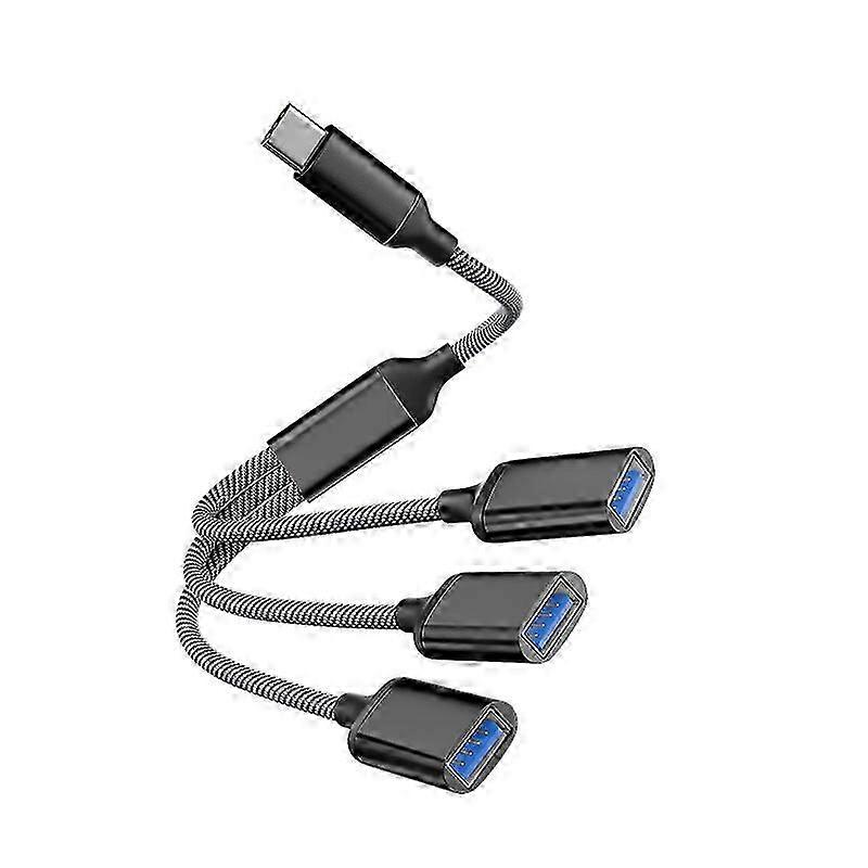 Type C to 3 USB Adapter USB-C Male OTG A Female Data Connector Converter USB C OTG AdapterThis USB OTG adapter helps convert USB-C port into a USB 2.0 port to connect your external hard drive, flash drive, USB thumb drive, keyboard, hub, mouse and other USB peripherals that support USB OTG function. Enable smartphone/tablet/laptop to read or transfer data. Durable and Reliableotg cable shell is made of high-quality material, Strict quality inspection standards, fine appearance details, refuse to be shoddy. All components are made of environmentally friendly materials. Universal CompatibilitySupports a wide range of devices with Type-C interfaces, such as mobile phones and computers, allowing for connection to external USB devices. Enables connectivity with peripherals like keyboards, mice, USB drives, and card readers, enhancing device functionality and usability.