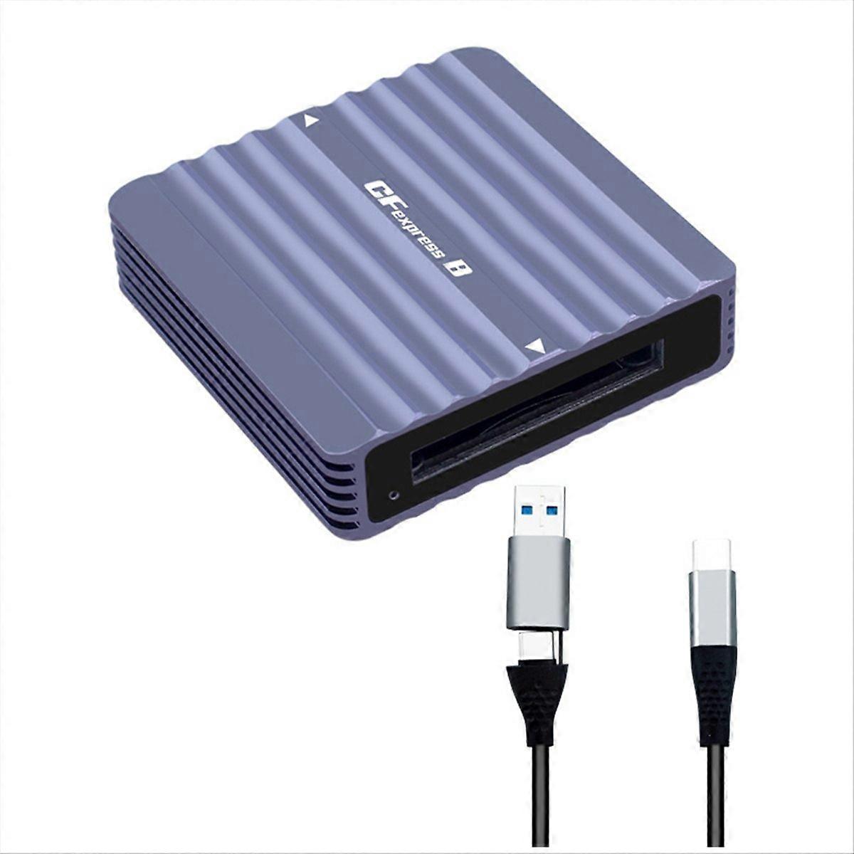 Feature: 1.Versatile Compatibility: This CFexpress Type B card reader features CFexpress Type A slots, allowing support of CFexpress Type B cards. 2.High-Speed Transfer: With a USB 3.2 interface, the cardreader adapter provides high-speed data transfer, allowing for quick access and transfer of data from your storage cards. You can efficiently backup and transfer a large number of photos and video files, enhancing your workflow. 3.Portable and User-Friendly: The memory card reader is compact and lightweight, making it easy to carry. Whether you're shooting outdoors or in a studio environment, you can use it anytime. It is also incredibly easy to use-simply insert the storage card into the corresponding slot, and you can quickly access your data. 4.Reliable and Stable: Manufactured with high-quality materials, the CFexpress reader offers reliable and stable performance. It ensures stable data transfer and provides protection to ensure the safety and integrity of your data, preventing accidental loss or damage. 5.Versatile Applications: This CFexpress card adapter is not only suitable for DSLR cameras but also widely applicable to other devices. Whether it's cameras, laptops, tablets, or smartphones, you can use this reader for data transfer and backup purposes. Material: Aluminum alloy colour: Space Gray Package Contents: 1 x CFexpress Card Reader 1 x data cable Only the above package content, other products are not included. Note: Light reflection and different displays may cause the color of the item in the picture a little different from the real thing. The measurement allowed error is +/- 1-3cm.
