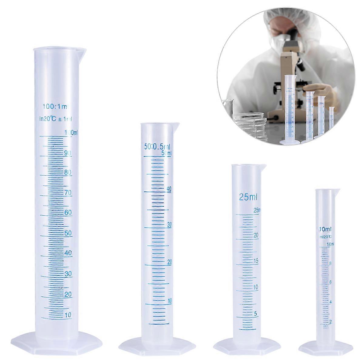 UEETEK 4pcs Transparent Measuring Plastic Graduated Cylinder 10ml / 25ml / 50ml / 100ml