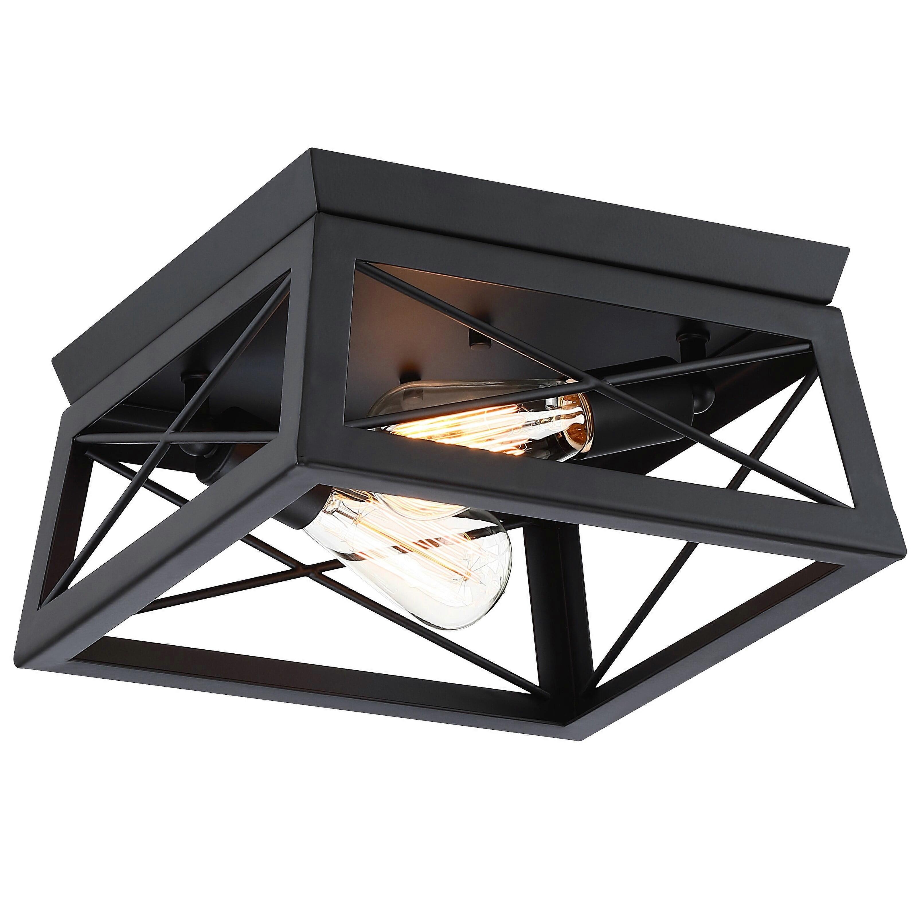 Unbranded 2 Light Caged Square/Rectangle Flush Mount Fixture Matte Black