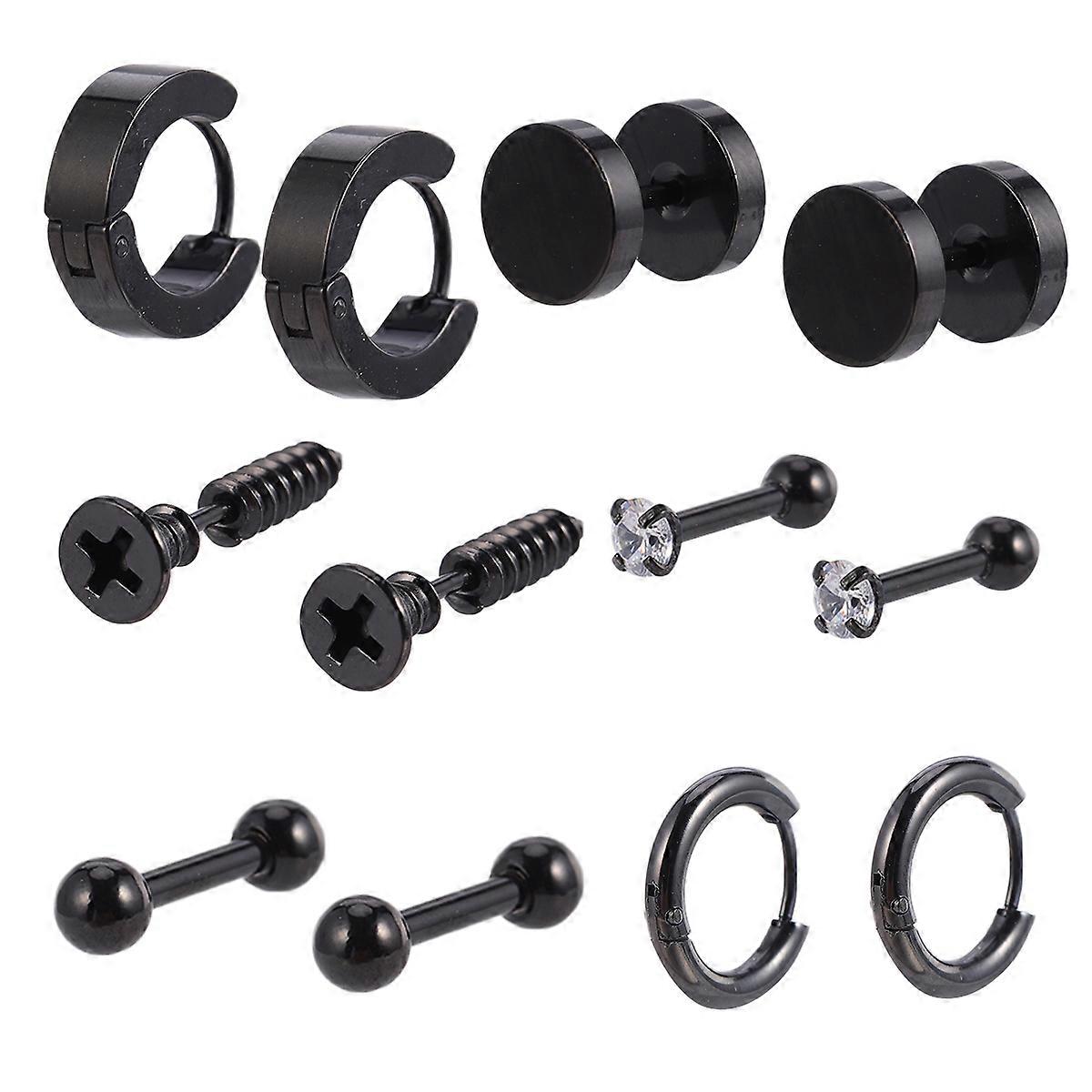 Unisex Piercing Earrings Set Fashioned In Black Color With 6 Pairs Of Unique Designs Perfect For Parties Dates And Gifting