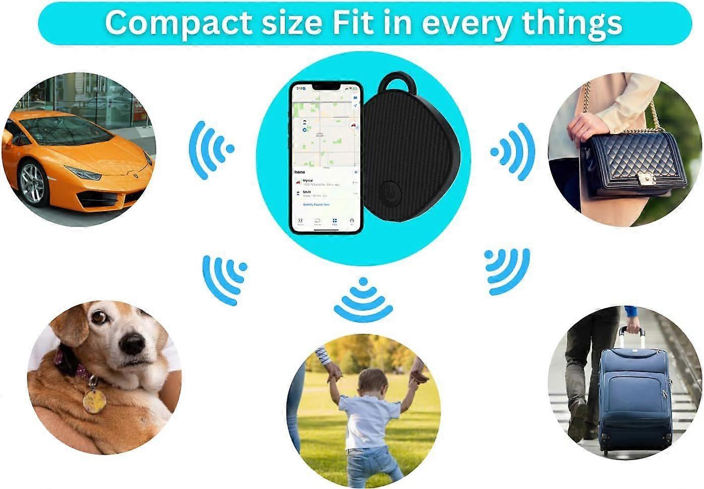 Unlimited range GPS tracking device, item locator, suitable for cars, wallets, pets, keys, compatible, no third-party app required (black)