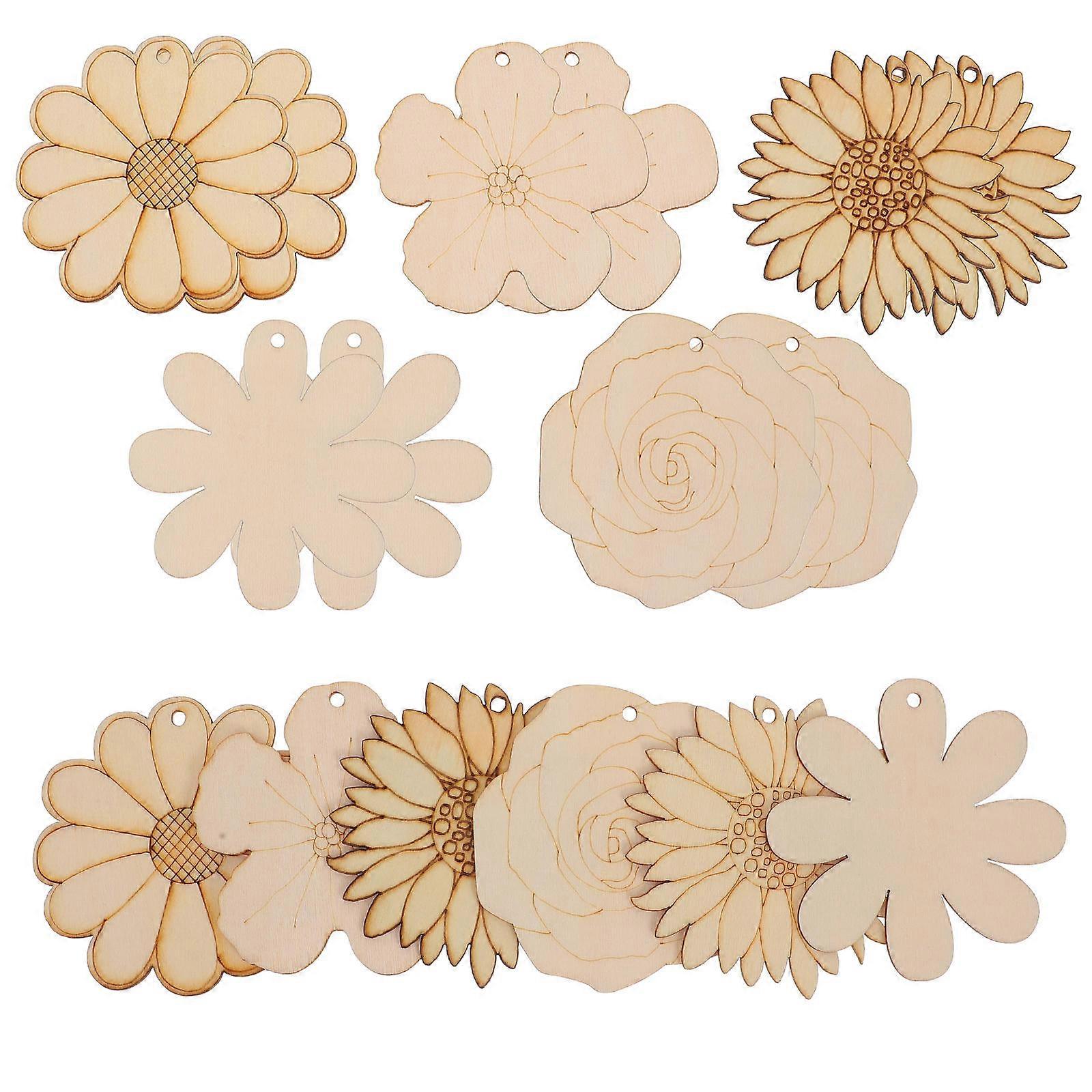 Unpainted Wooden DIY Crafts 80Pcs with Jute String