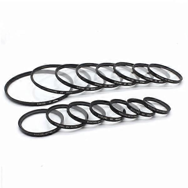 UV filter / UV filter that protects your lens against damage such as scratches / scratches, dirt, moisture and fingerprints. A protector for your lens / lens can easily save you many thousands of dollars. Often used as permanent lens protection. Minimize the effect of ultraviolet light. The filter absorbs ultraviolet rays which are the source of error when pictures taken outdoors become unclear and diffuse. Filter material: Metal and glass Brand: RISE(UK) Suitable for both still images / pictures / photos and video. UV filter items to choose from are 37mm, 40.5mm, 43mm, 46mm, 49mm, 52mm, 55mm, 58mm, 62mm, 67mm, 72mm, 77mm and 82mm. If any of the sizes is not listed, it has sold out and is back in stock, so check back in a few days. Threads also on the front of this lens, which means that you can attach additional lenses and combine with, for example, another macro / macro filter / macro / macro filter / close-up / closeup filter / close-up lens / close-up filter / CPL / CPL filter / circular circular polarization / polarization filter, gray / gray filter / nd / nd filter or FLD / FLD filter. Fits lenses for camera / cameras from Canon, Nikon, Micro 4/3, Pentax, compatible with Samsung, compatible with Sony, Tamron, Sigma, Nikkor and Leica. Your lens may have the following designations: AF AF-S AL ART APO APS-C DA DC DG Di DT DX E EG ED F FI FX G HD HSM I II III IIII LD Macro MF NIKKOR OS PRO SMC-DA SP UMC VC VR XR. Below are lenses that fit Canon cameras where the filter fits. If the camera is not factory-made, check at the front of the lens which mm filter thread you need for your filter. 49 mm Canon lens where the UV filter fits. Also fits all other brands of lenses. Canon EF-M 15-45/3.5-6.3 IS STM silver or black (for EOS M) Canon EF-S 35/2.8 Macro IS STM Canon EF 50/1.8 STM Sigma EX 17-50/2.8 DC OS HSM for Canon 52 mm lens canon where the uv filter fits. Also fits all other brands of lenses. Canon EF-M 15-45/3.5-6.3 IS STM black/graphite EOS M Canon EF-S 24/2.8 STM Canon EF 40/2.8 STM Canon EF-M 55-200/4.5-6.3 IS STM (for EOS M) silver/black Canon EF-S 60/2.8 USM Macro 55 mm lens canon where the uv filter fits. Also fits all other brands of lenses. Canon EF-M 11-22/4-5.6 IS STM (for EOS M) Canon EF-M 18-150/3.5-6.3 IS STM silver / black (for EOS M) Tamron AF SP 60/2.0 Di II Macro Tamron AF SP 90/2.8 Di Macro 1:1 (Canon) Tokina AT-X M100/2.8 Macro 1:1 PRO D for Canon 58 mm lens canon where the uv filter fits. Also fits all other brands of lenses. Canon EF-S 18-55/3.5-5.6 IS STM Canon EF-S 18-55/3.5-5.6 IS II Canon EF 24/2.8 IS USM Canon EF 28/1.8 USM Canon EF 28/2.8 IS USM Canon EF 50/1.4 USM Canon EF-S 55-250/4-5.6 IS Canon EF-S 55-250/4-5.6 IS STM Canon MP-E65/2.8 1-5x Canon EF 70-300/4-5.6 IS USM Canon EF 75-300/4-5.6 III DC Canon EF 85/1.8 USM Canon TS-E 90/2.8 Canon EF 100/2.0 USM Canon EF 100/2.8 USM Macro 1:1 Samyang 21/1.4 ED AS UMC CS for Canon EOS M Sigma AF 70-300/4-5.6 DG APO Zoom Macro for Canon Zeiss Distagon T 28/2.0 ZE for Canon Zeiss Milvus 35/2.0 for Canon EF/EOS (ZE) Zeiss Planar T 50/1.4 ZE for Canon 62 mm lens canon where the uv filter fits. Also fits all other brands of lenses. 67 mm lens canon where the uv filter fits. Also fits all other brands of lenses. 72 mm lens canon where the uv filter fits. Also fits all other brands of lenses. 77 mm lens canon where the uv filter fits. Also fits all other brands of lenses. 82 mm lens canon where the uv filter fits. Also fits all other brands of lenses.