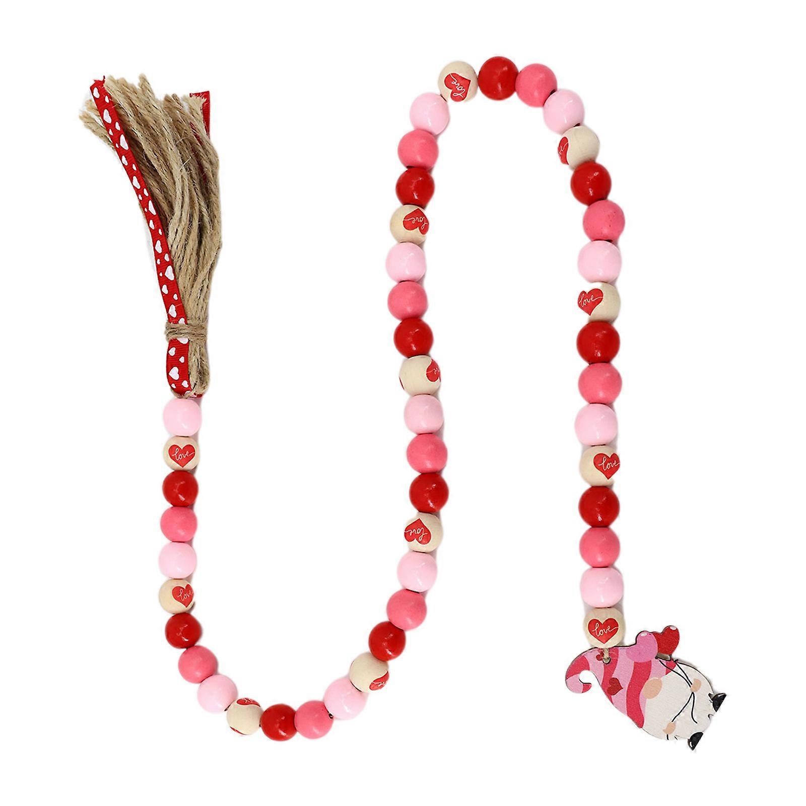 Valentine's Day Wooden Beads with Gnome Tassel Garland Farmhouse Rustic Beads
