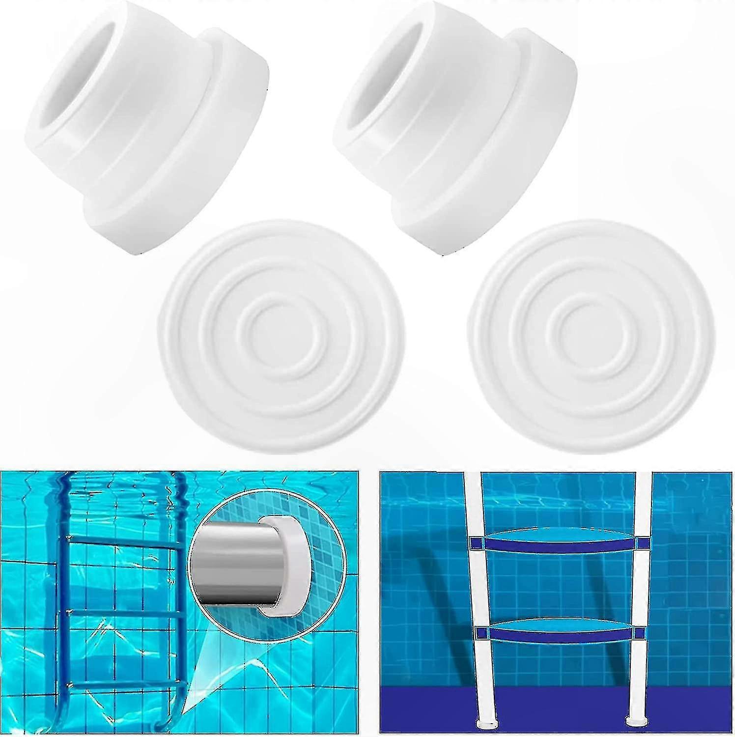White Rubber Pool Ladder Bumpers, 2-Pack Caps for 1.90" Inground Swimming Pool Ladders
