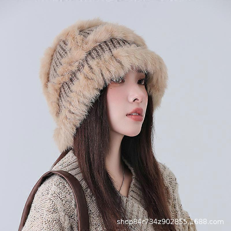 Women's Winter Soft Faux Fur Fluffy Beanie Hat Wide Brim Fisherman Hat Warm Winter Fur Hat for Girls