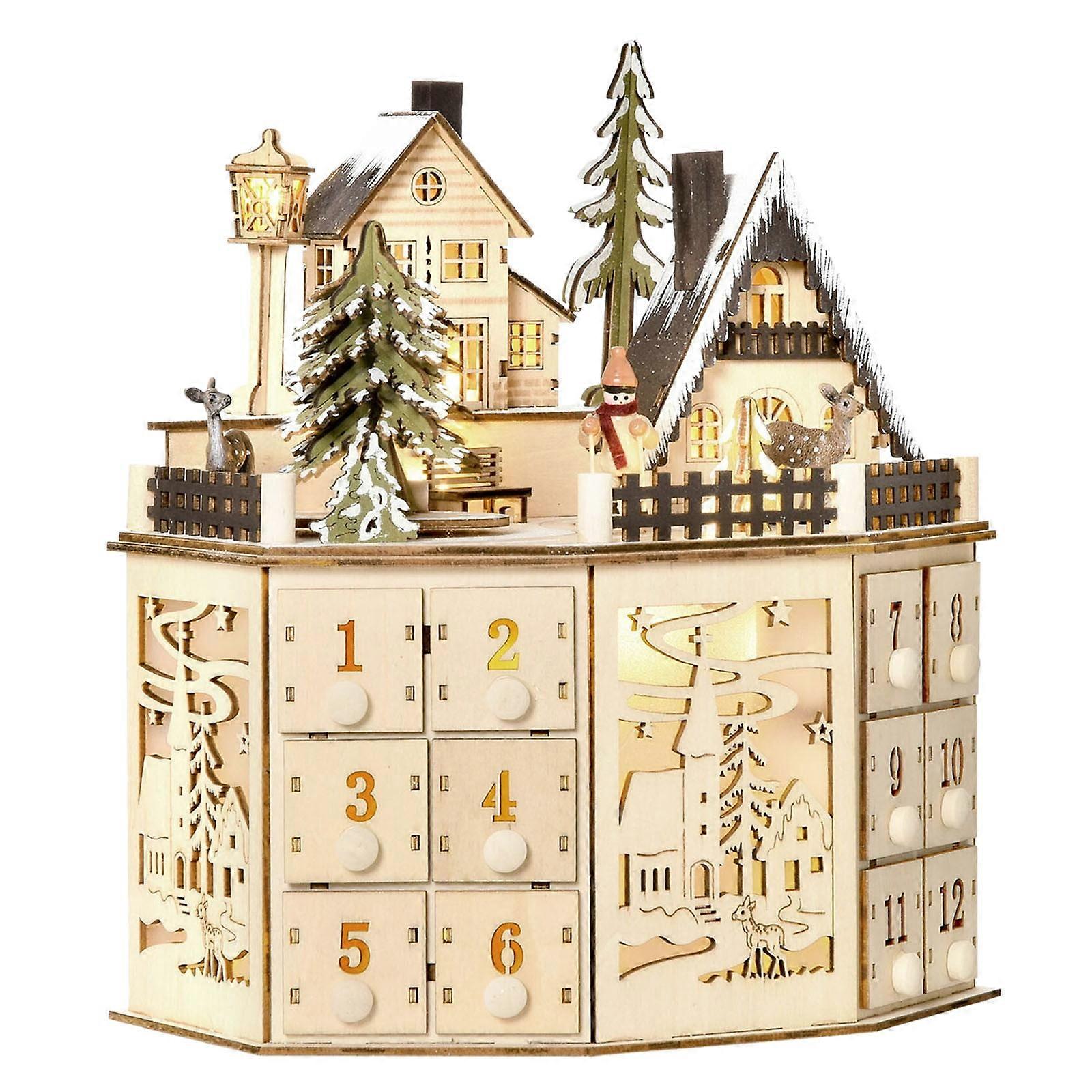 Wooden Advent Calendar with 24 Drawers, LED Illuminated, Music, Empty for Filling, Countdown to Christmas - Compatible with Holiday Decor